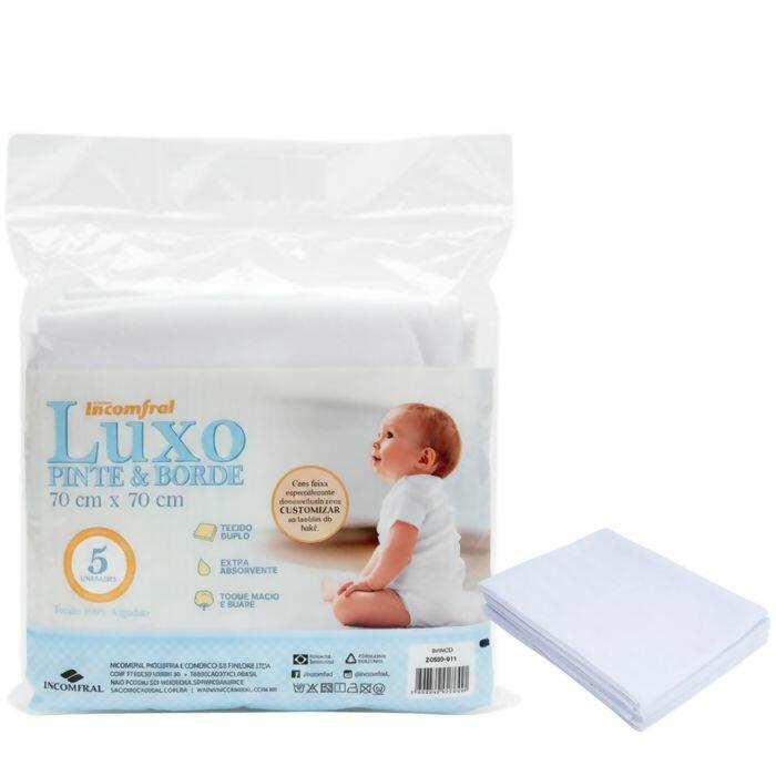 Fralda Luxo 70x70 Pinte e Borde Branca c/5un Incomfral | 32029