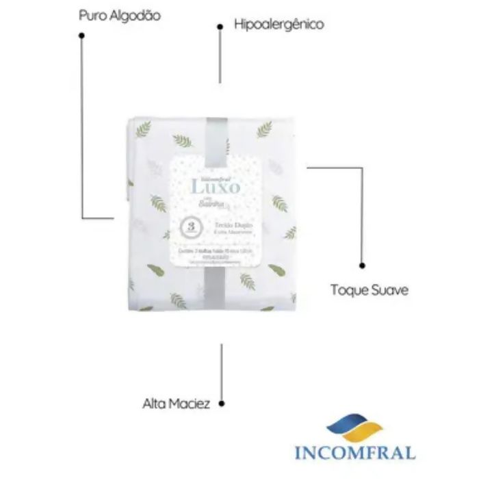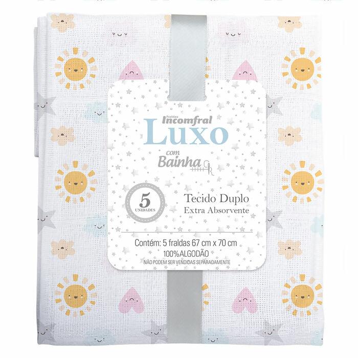 Descrição Fralda Luxo com Bainha Estampada Cx 05 unid. 67cm X 70cm Supreme | 32113