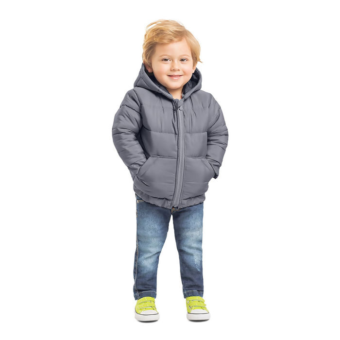 Jaqueta em poliéster com enchimento.