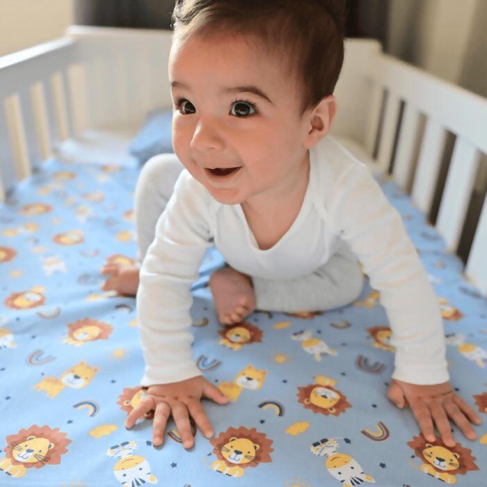 O jogo de lençol para berço de 03 peças com estampa de LEÃOZINHO é um conjunto essencial para o enxoval do bebê. Composto por lençol de baixo, lençol de cima e fronha, ele oferece conforto e praticidade para o sono do bebê.