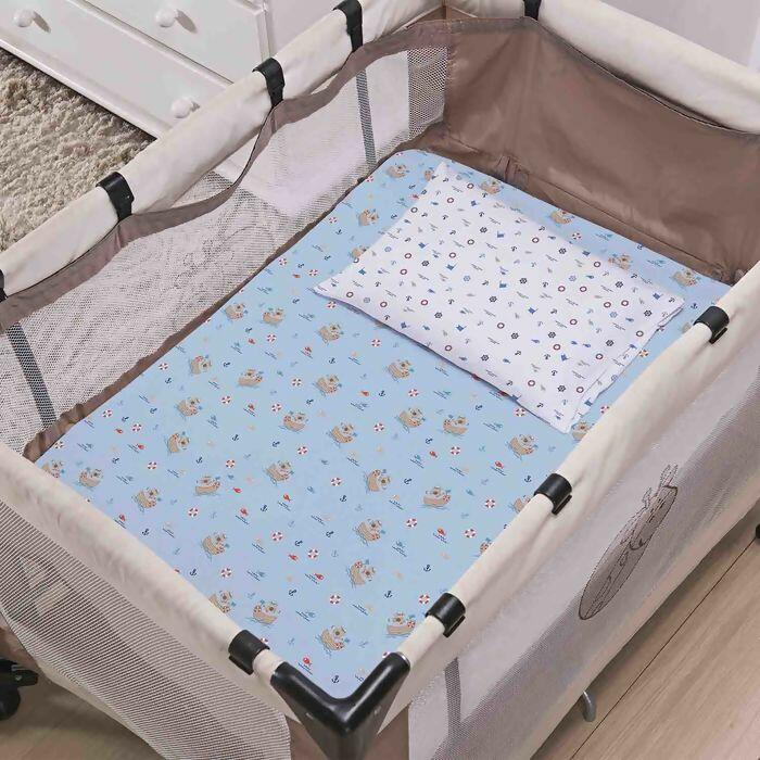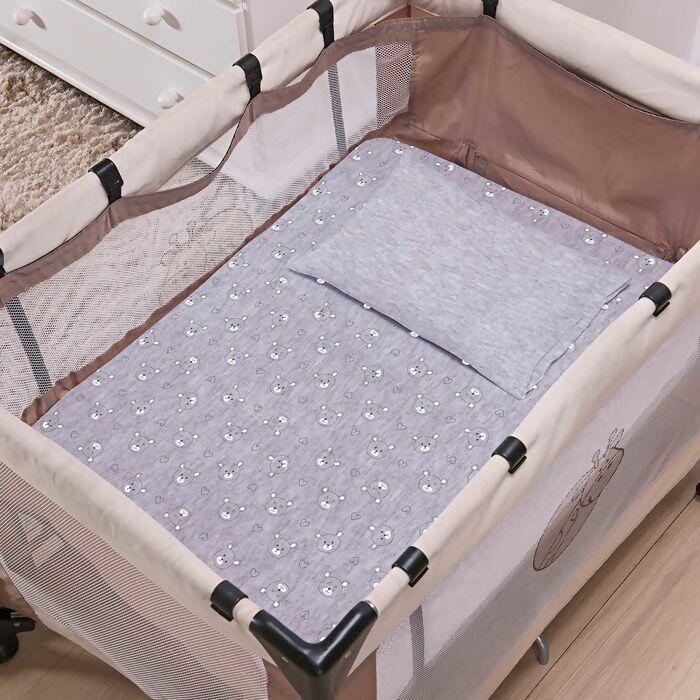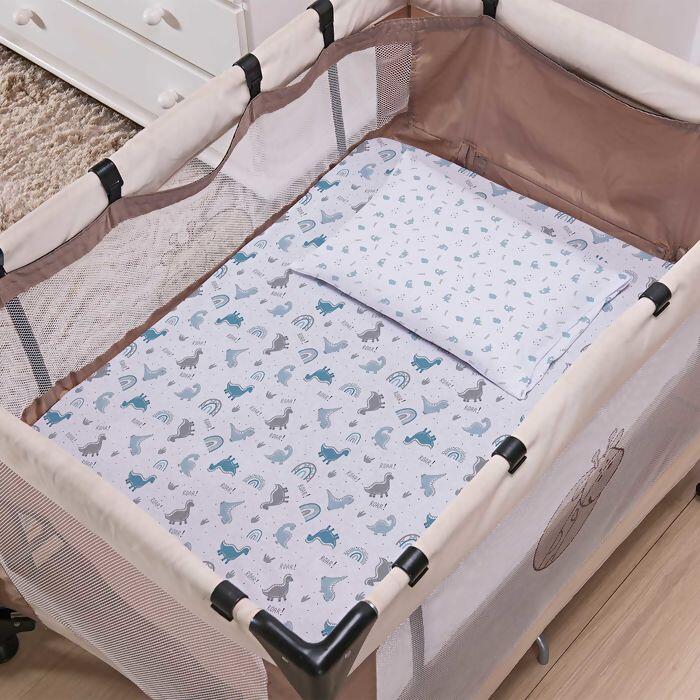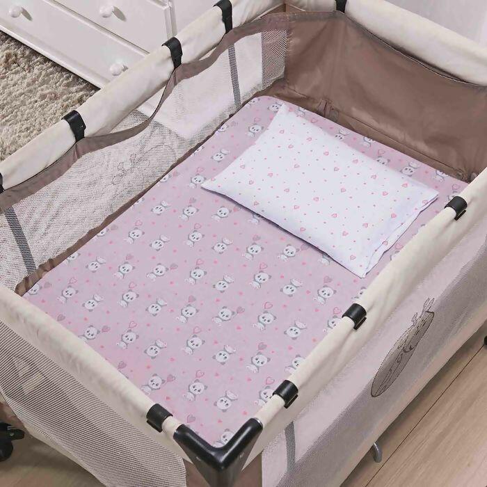 O jogo de lençol para berço cercado vem com 02 peças essenciais para o berço: uma fronha estampada, um lençol de baixo, estampado, com elástico.O kit de lençol é confeccionado no tecido malha 100% algodão. Possui toque suave e macio, garantindO jogo de lençol para berço é essencial para garantir o conforto e a segurança do seu bebê durante o sono. Feito com materiais macios como algodão, proporciona um ambiente aconchegante para o descanso do bebê.