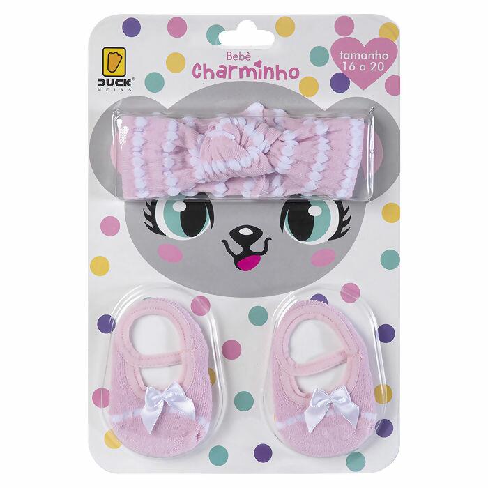 Descrição Kit Bebê Charminho Tiara e Meia Sapatilha Rosa e Branco 16 ao 20 Duck Meias | 31012
