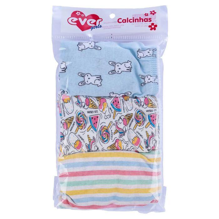 Descrição Kit Calcinha Estampada PP ao GG com 3 Un. Everly | 6521
