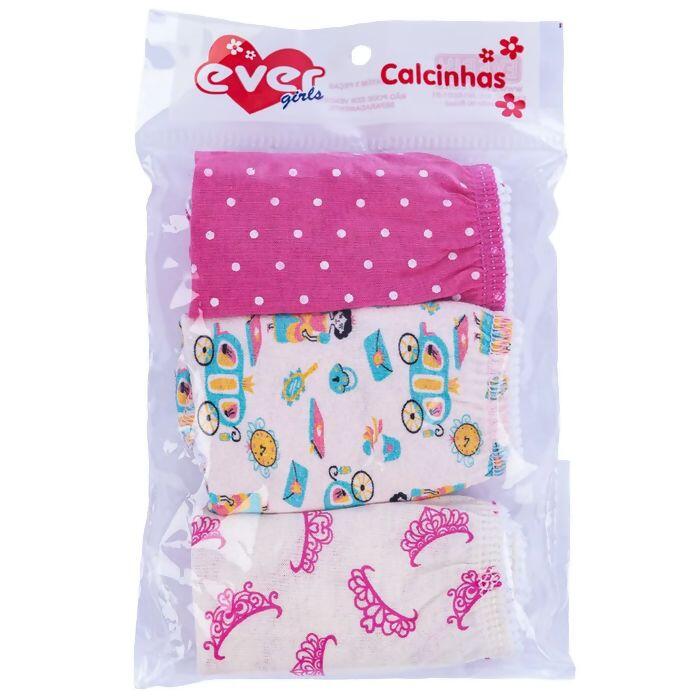 Kit Calcinha Princesas PP ao GG 3 Un Everly | 6522