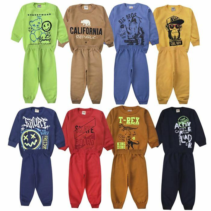 Aproveite a oportunidade de aumentar suas vendas com o Kit Conjunto Masculino Moletom! Este kit inclui 12 unidades, com 2 peça por tamanho (do 1 ao 8), oferecendo blusão com punho e estampas sortidas, combinado com calça lisa de moletom com cós de elástico. Ideal para lojistas e revendedores que buscam praticidade e qualidade para o público infantil.