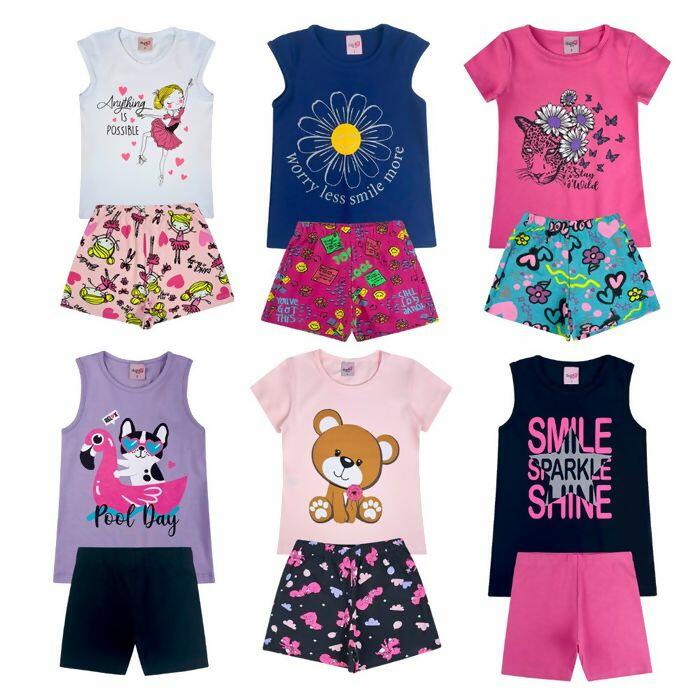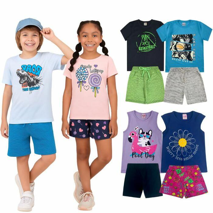 Kit sortido com 12 conjuntos infantis para o verão, sendo modelos masculinos e femininos nos tamanhos do 1 ao 8. As peças combinam conforto e estilo, ideais para compor a vitrine da estação com variedade e excelente custo-benefício. Conjuntos leves, com estampas alegres e tecidos apropriados para os dias quentes, perfeitos para lojistas que desejam oferecer opções práticas e atrativas para o público infantil.