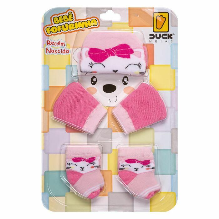 Descrição Kit Fofurinha - Luva, Meia e Touca Gata Rosa RN Duck Meias | 45015