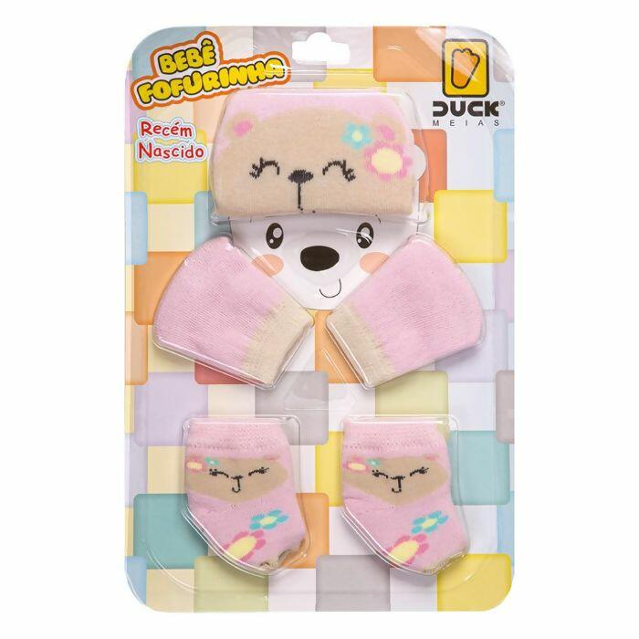 Descrição Kit Fofurinha - Luva, Meia e Touca Ursa Rosa RN Duck Meias | 45017