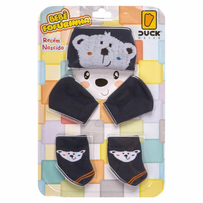 Descrição Kit Fofurinha - Luva, Meia e Touca Urso Preto RN Duck Meias | 45014