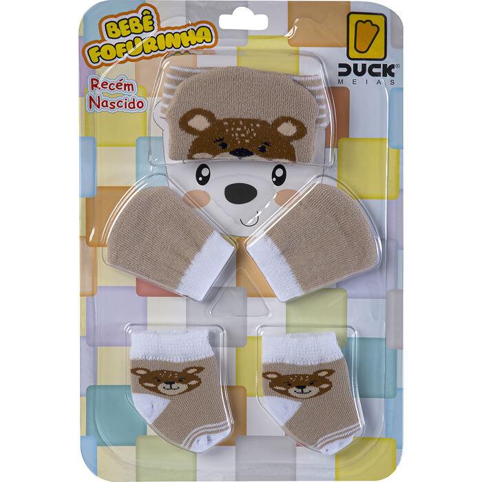 Kit Fofurinha Luva Meia e Touca Urso Bege Duck Meias | 45010