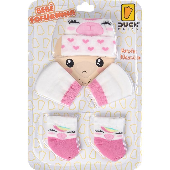 Descrição Kit Fofurinha RN Touca, Luva e Meia UNICORNIO Duck Meias | DUC45022