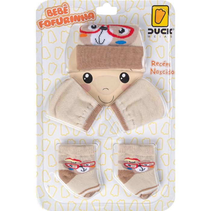 Descrição Kit Fofurinha RN Touca, Luva e Meia URSO OCULOS Duck Meias | DUC45025