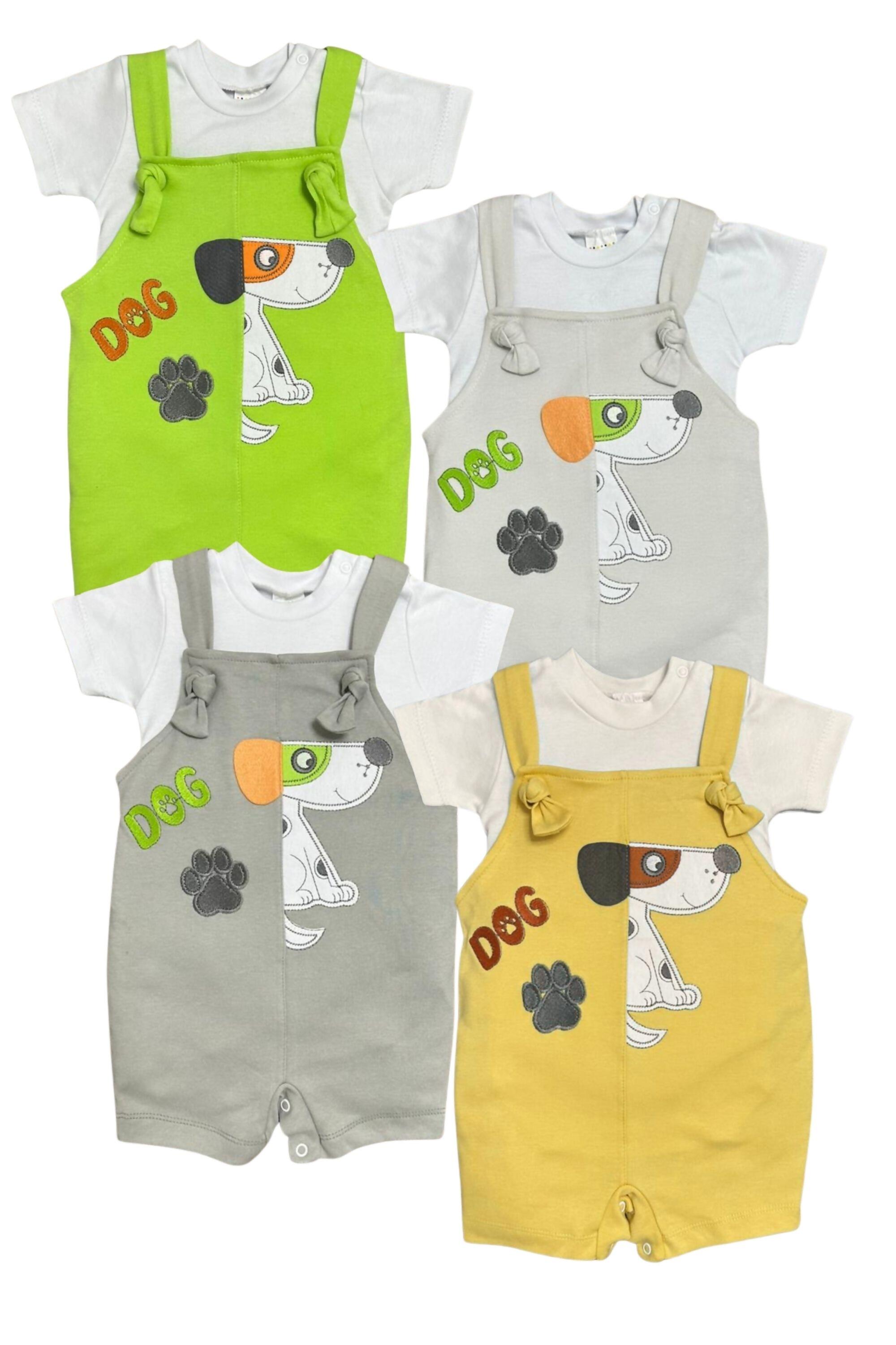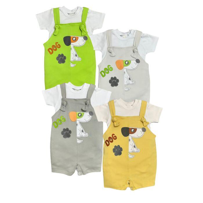 Macacão e body confeccionados em malha macia e confortável, com estampa divertida de cachorrinho. O conjunto é ideal para o dia a dia dos pequenos, garantindo praticidade e estilo nas produções.