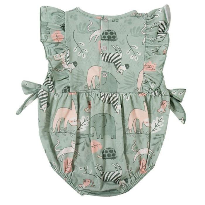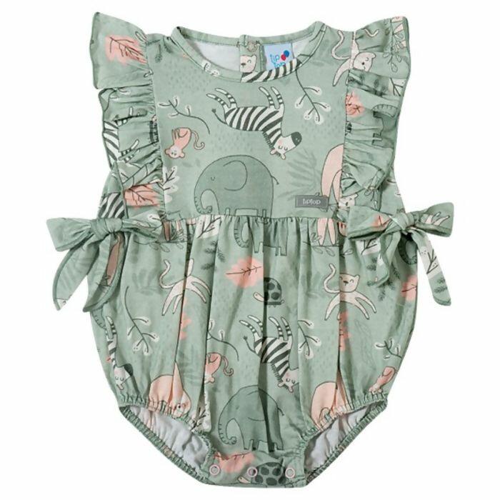 Descubra o Macacão Curto Feminino da TipTop, feito em meia malha 100% algodão. Com estampa rotativa de safari, apresentando elefantinhos, zebras, macaquinhos e mais, esta peça é cheia de charme.