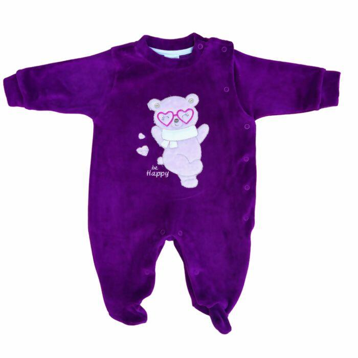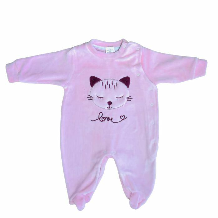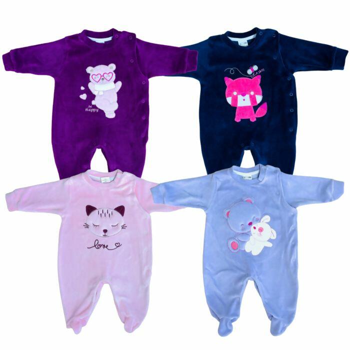 Macacão feminino em plush super macio, com estampa delicada bordada e centralizada. Abertura lateral com botões que facilita o vestir e a troca.