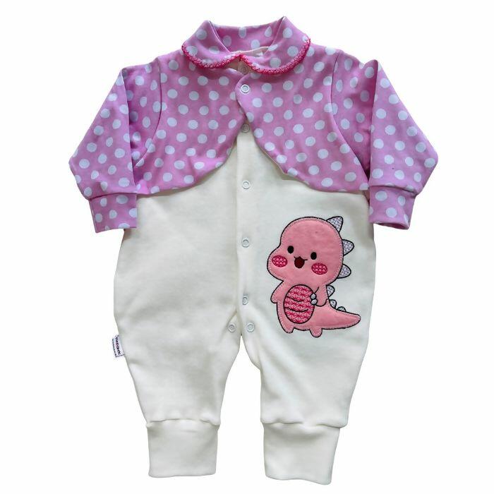 Descrição Macacão Feminino Suedine Dinossaura RN ao G Sonekinha Baby | 2982