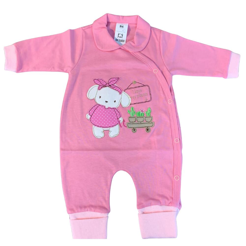 Macacão longo feminino tamanho RN, confeccionado em malha suave e confortável, com design delicado da linha Love que transmite aconchego e estilo. Uma peça charmosa e de qualidade, ideal para compor o enxoval e agregar valor ao mix de moda bebê da sua loja.