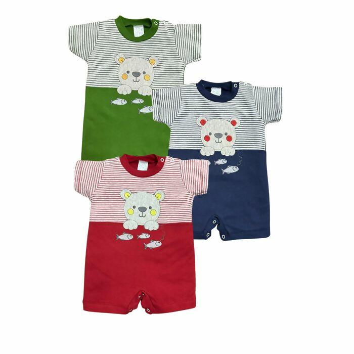 Macacão Primeiros Passos Curto Urso e Peixes Masculino Petutinha | PT2578