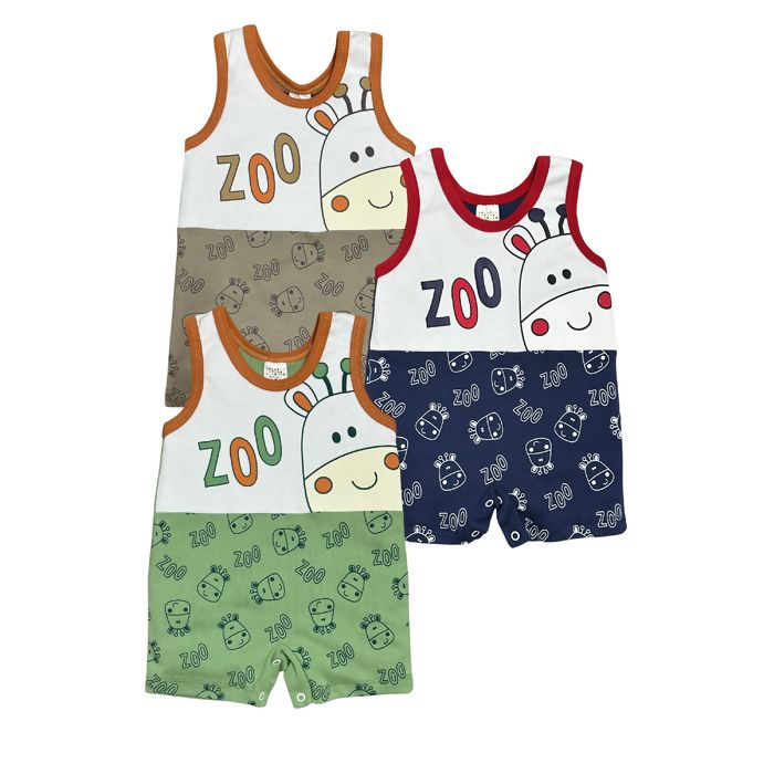 Descrição Macacão Primeiros Passos Regata Zoo Masculino Petutinha | PT2579V