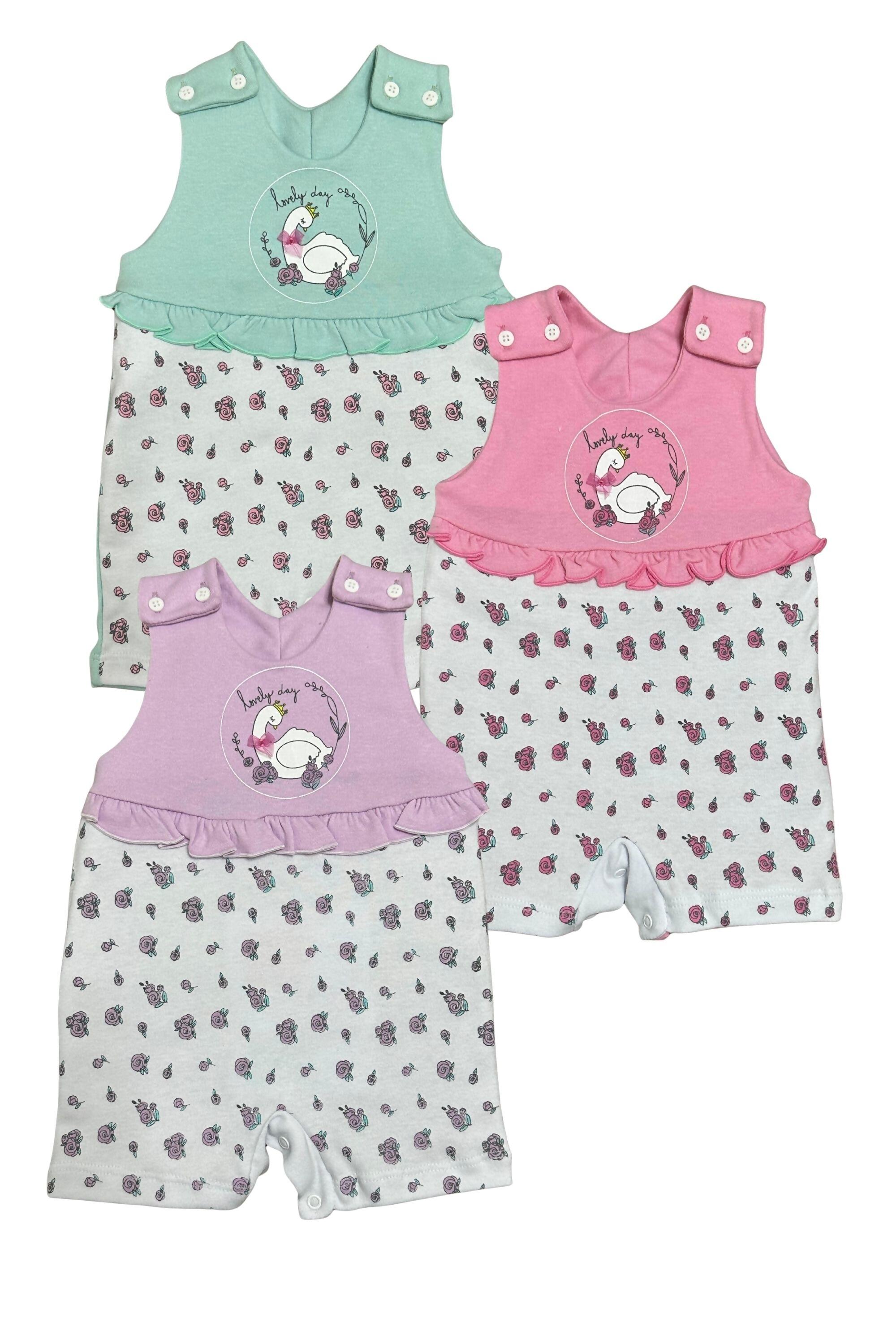 Macacão curto de bebê confeccionado em malha leve e confortável, ideal para os dias mais quentes. O detalhe do cisne dá um toque delicado e encantador à peça.