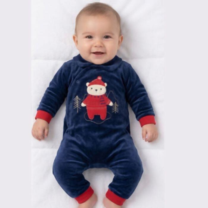 Macacão para bebê confeccionado em plush macio, proporcionando conforto e aconchego para o dia a dia. A peça apresenta modelagem prática e acabamento de qualidade, sendo ideal para garantir bem-estar ao bebê e valorizar a apresentação no ponto de venda. Um produto indispensável no enxoval e com ótima aceitação no mercado.