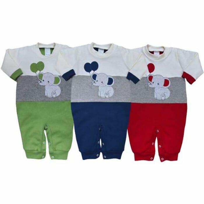 Descrição Macacão Suedine Bebê Elefante RN ao G Petutinha | 2389
