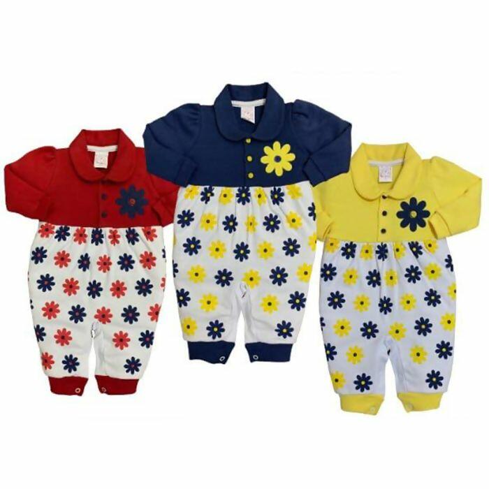 Macacão Suedine Bebê Margaridas RN ao G Petutinha | 2339