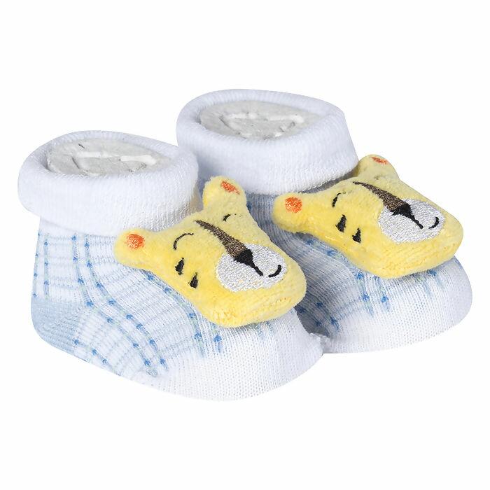 Meia Bebê Divertida com Fantoche de Tigre - Branco