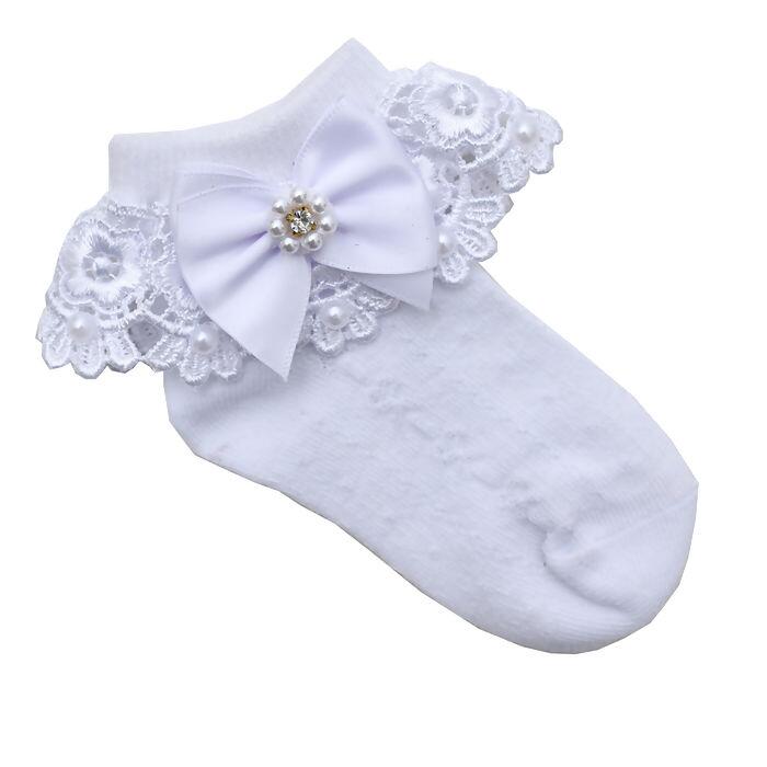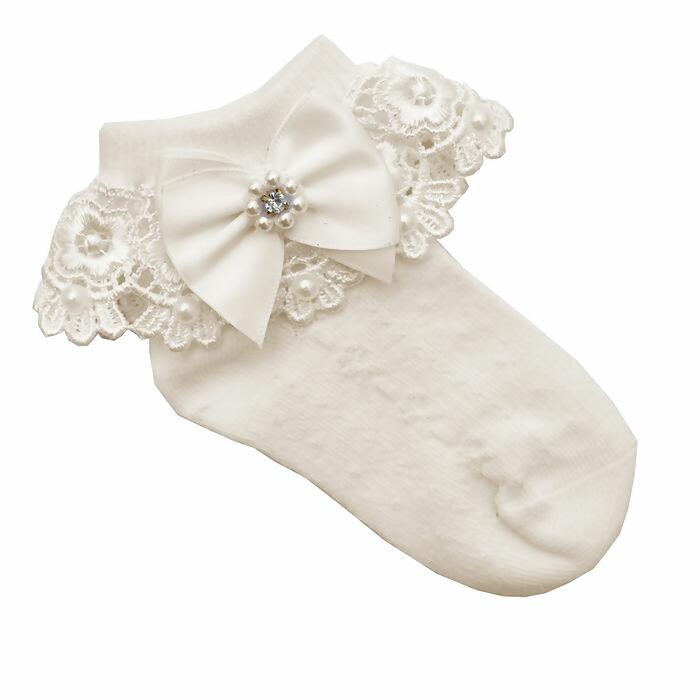Confeccionado em algodão, a meia soquete rendada possui ponto trabalhado, aplicação de renda e laço de cetim. É uma peça delicada com ricos detalhes em seu acabamento. Perfeito para as mamães que amam um acessório diferente e delicado sem deixar o conforto de lado.