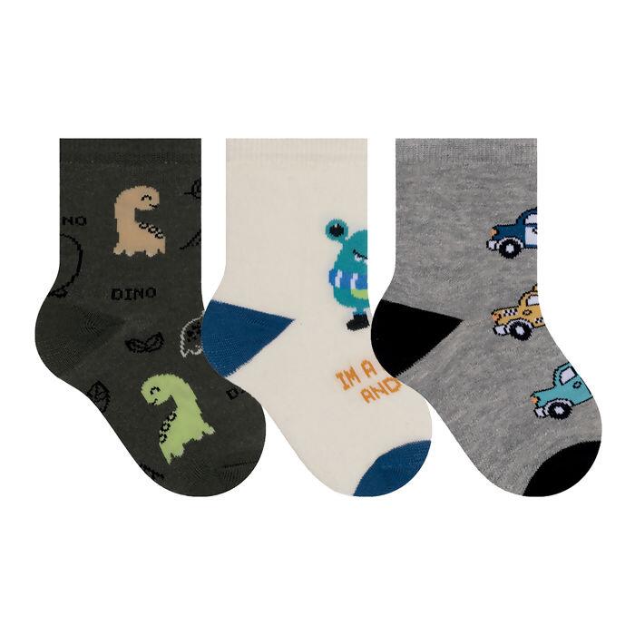 Pacote com 3 pares de meias masculinas estampadas, disponíveis nos tamanhos 0 (17-20) e 1 (21-24). Confeccionadas com algodão, elastano, poliamida e poliéster, unem conforto e estilo. Peça exclusiva da Selene, ideal para diversificar o mix de produtos de lojistas.