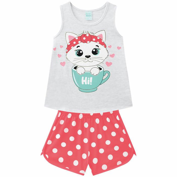 Descrição Pijama Manga Curta Feminino 'Hi' 10-16 KYLY | 111642