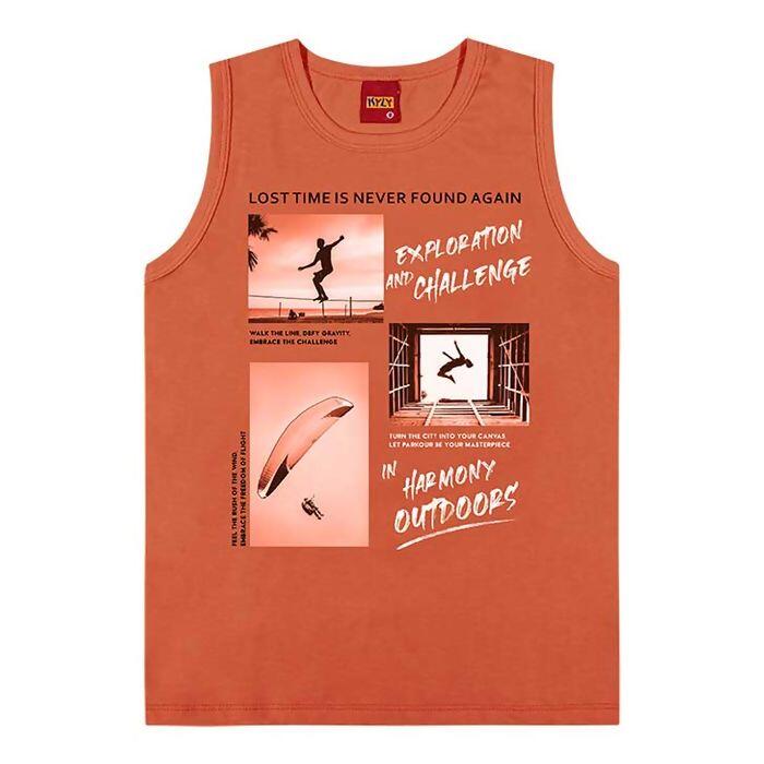 Camiseta Regata Infantil Kyly ¿ Malha 100% Algodão com Escrita "Exploration and Challenge"
