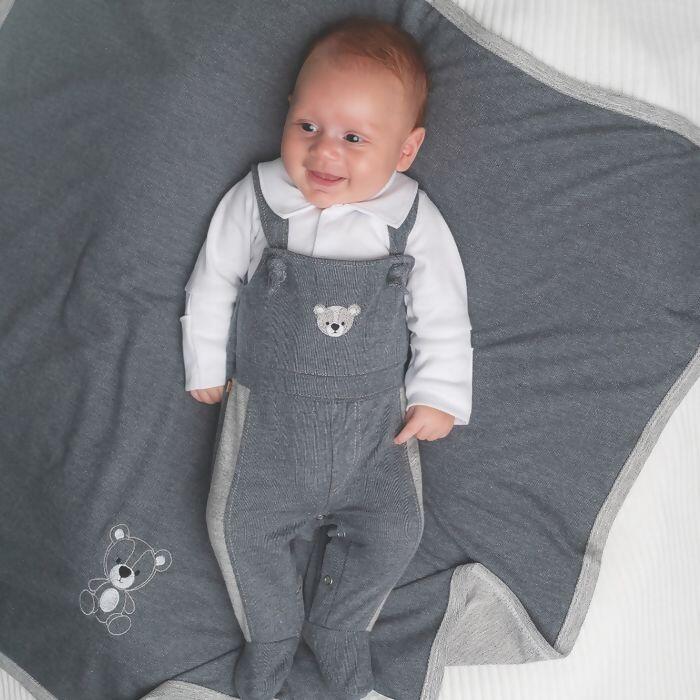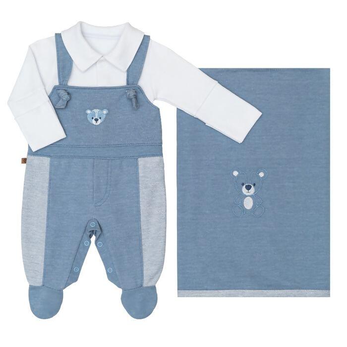 Saída de Maternidade Masculina Fofinho em Suedine com Estampa de Urso