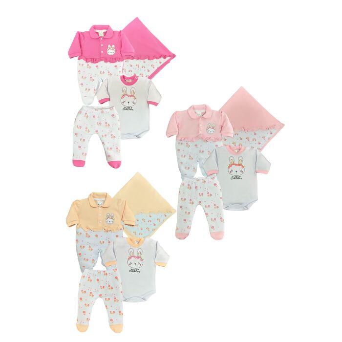 Descrição Saída de Maternidade Feminina Prematuro 4 Peças COELHA Petutinha | 3291