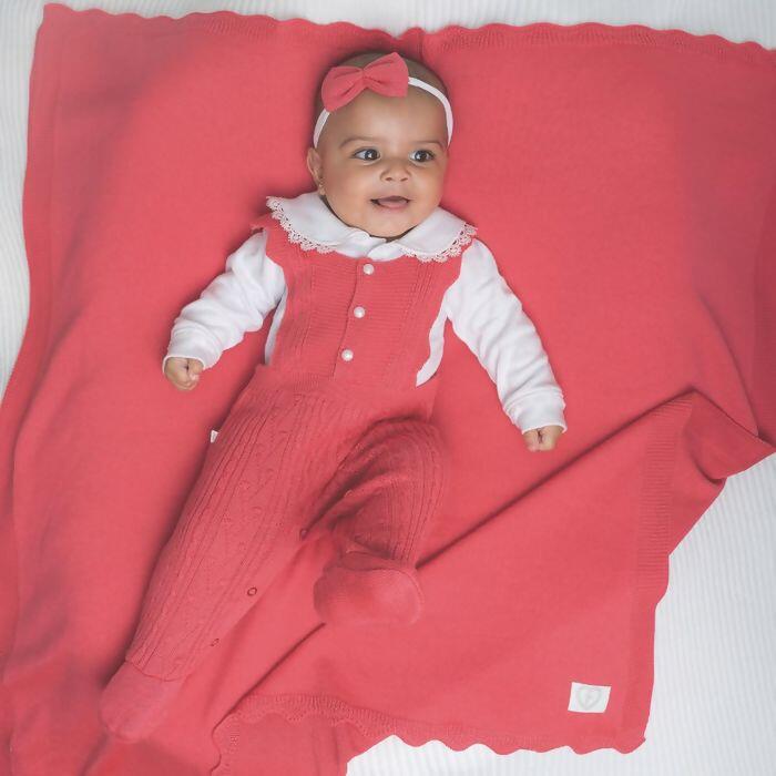 O tricô garante um toque macio e confortável, enquanto o design da jardineira e a gola boneca valorizam o visual da peça, ideal para os primeiros registros e para tornar a saída da maternidade ainda mais especial.