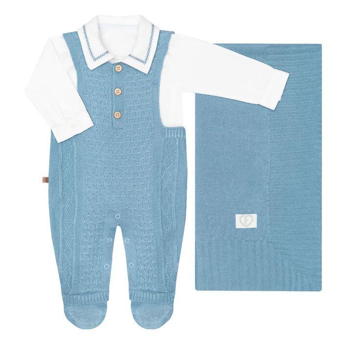 A Saída de Maternidade Masculina Fofinho é perfeita para lojistas que buscam oferecer produtos de qualidade, com acabamento sofisticado e conforto garantido para o recém-nascido. O conjunto é composto por macacão confeccionado em tricô macio e manta combinando, formando um look elegante e aconchegante para os primeiros momentos do bebê.
