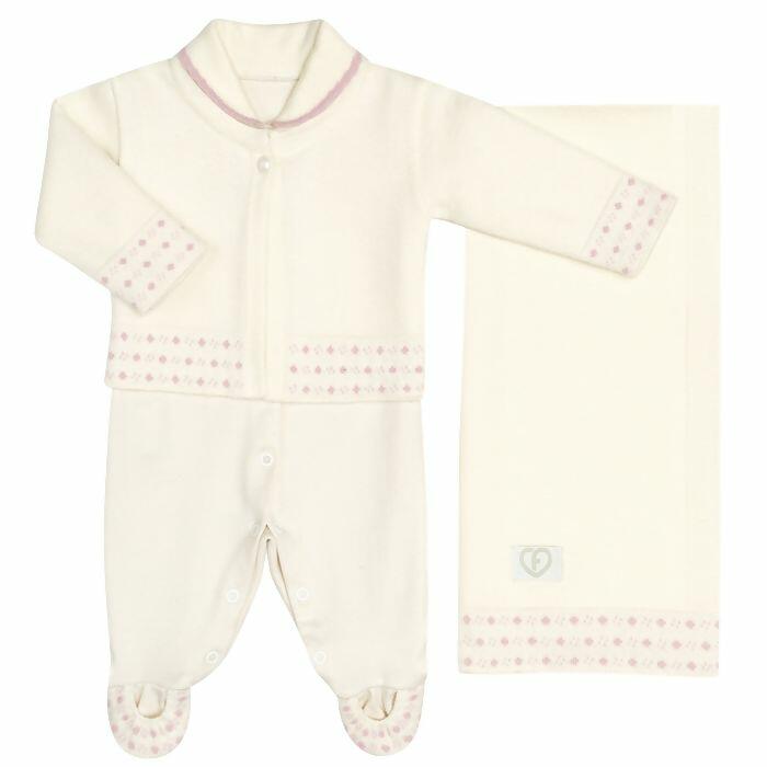 Apresente sofisticação e delicadeza aos seus clientes com esta saída maternidade feminina em tricô 100% acrílico. Os detalhes em bolinhas nos punhos, no barrado do casaco e no sapatinho tornam essa peça irresistível. Ideal para lojistas que desejam oferecer produtos exclusivos e encantadores, com excelente potencial de revenda.