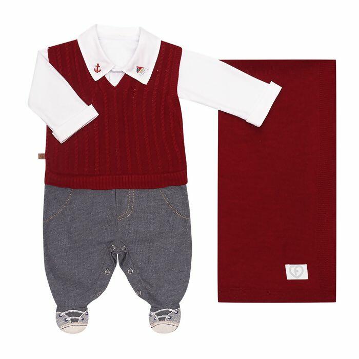 Apresente estilo e delicadeza com esta saída maternidade masculina em tricô 100% acrílico. O conjunto inclui um charmoso colete em tricô e gola bordada com âncora e barco, trazendo um toque náutico e sofisticado. Perfeito para lojistas que desejam oferecer produtos diferenciados e com alto apelo entre os clientes.