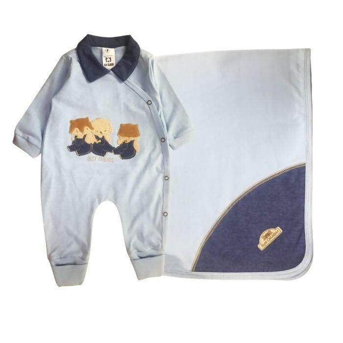 A Saída Maternidade Masculina Malha Best Friends da BumCalaBum é a escolha perfeita para lojistas que buscam qualidade e delicadeza. Confeccionado em malha macia (50% algodão, 50% poliéster), o macacão apresenta botões de pressão na lateral para facilitar a troca e um charmoso bordado que adiciona um toque especial. Acompanha uma manta aconchegante de 80cm x 66cm, ideal para manter o bebê confortável nos primeiros dias. Um conjunto encantador que valoriza qualquer vitrine e conquista revendedores.