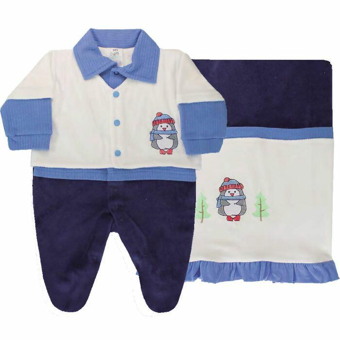 Descrição Saída Maternidade Masculina Plush Pinguim RN-P Bloomy's | 3587