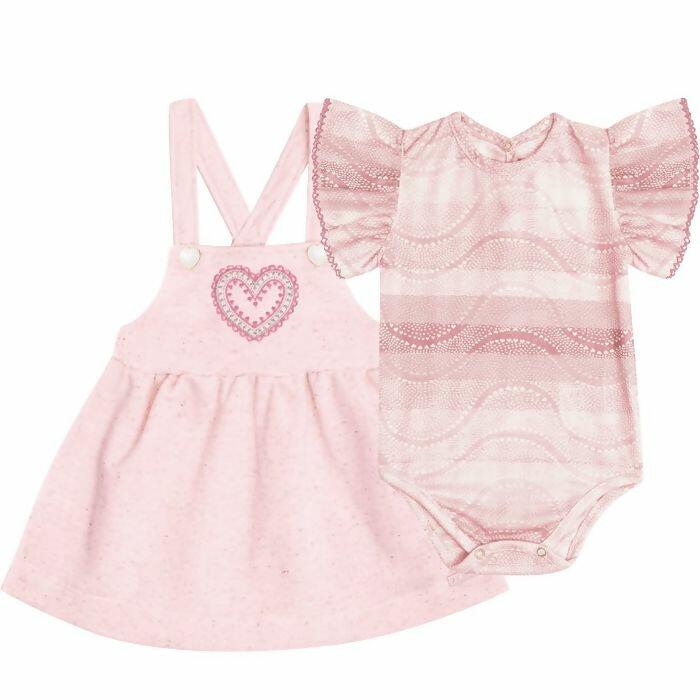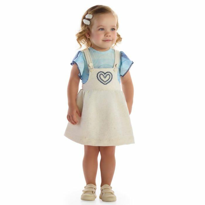 Salopete Infantil Kiki Xodó com Estampa de Coração e Body com Detalhes na Manga