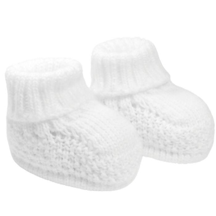 Sapatinho para recém-nascido confeccionado em tricô 100% acrílico, com toque macio e acabamento delicado. Modelo unissex versátil, ideal para compor o enxoval com charme e conforto. Excelente opção para lojistas que buscam peças de qualidade e fácil combinação.