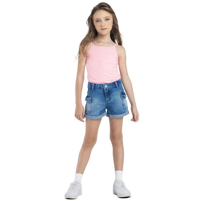 Short Juvenil Cargo Feminino Jeans 10 ao 16 Mania Kids | 6326