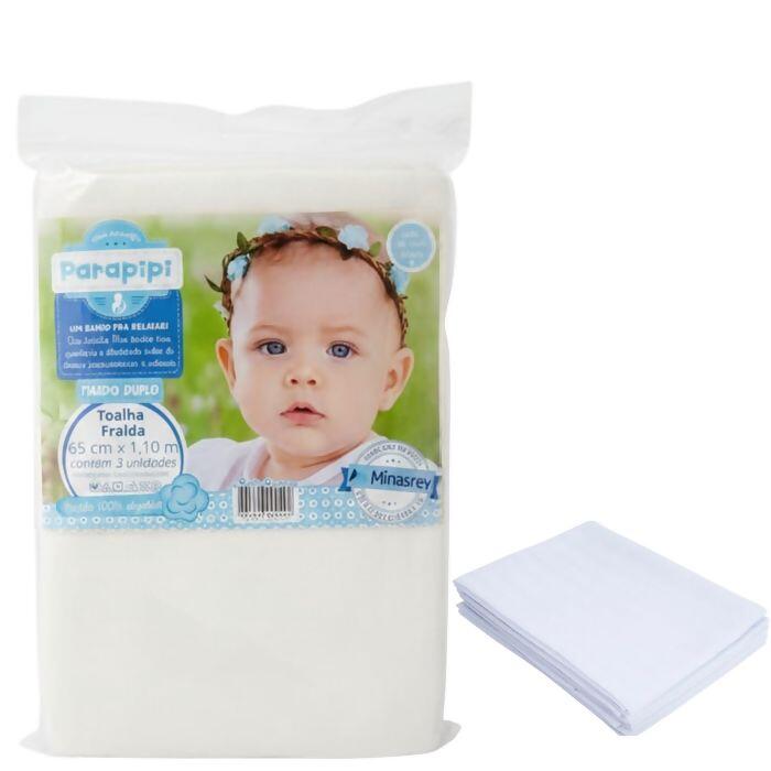 Toalha Fralda 65 x 110 Branca 3 un Parapipi | 1039
