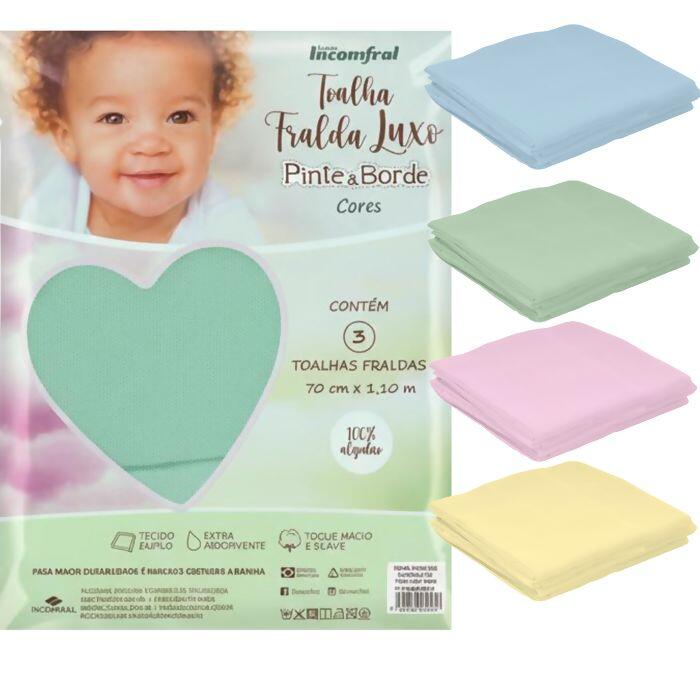 Toalha Fralda Luxo Pinte e Borde 3 unid. Incomfral | 77009