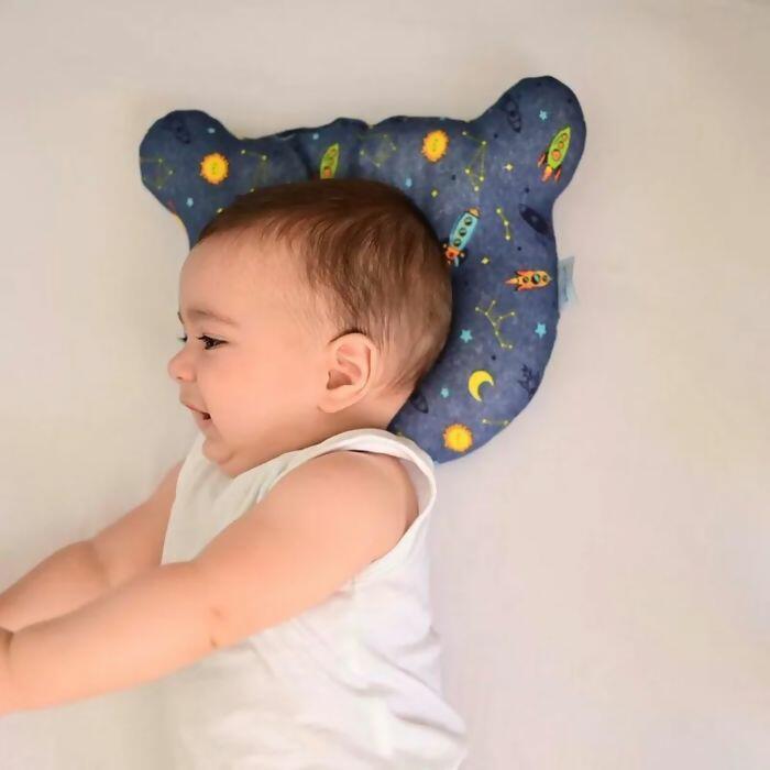 Formato anatômico: Desenvolvido para apoiar a cabeça e o pescoço do bebê, ajudando a manter o alinhamento correto e proporcionando uma posição de descanso confortável e segura.