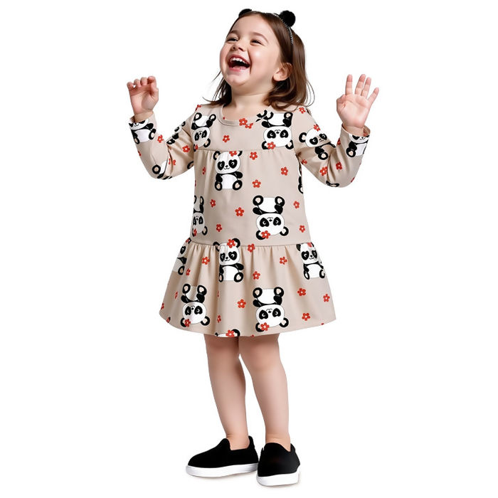 Vestido 1 a 3 Malha Pandas Manga Longa Kyly | 1001502P