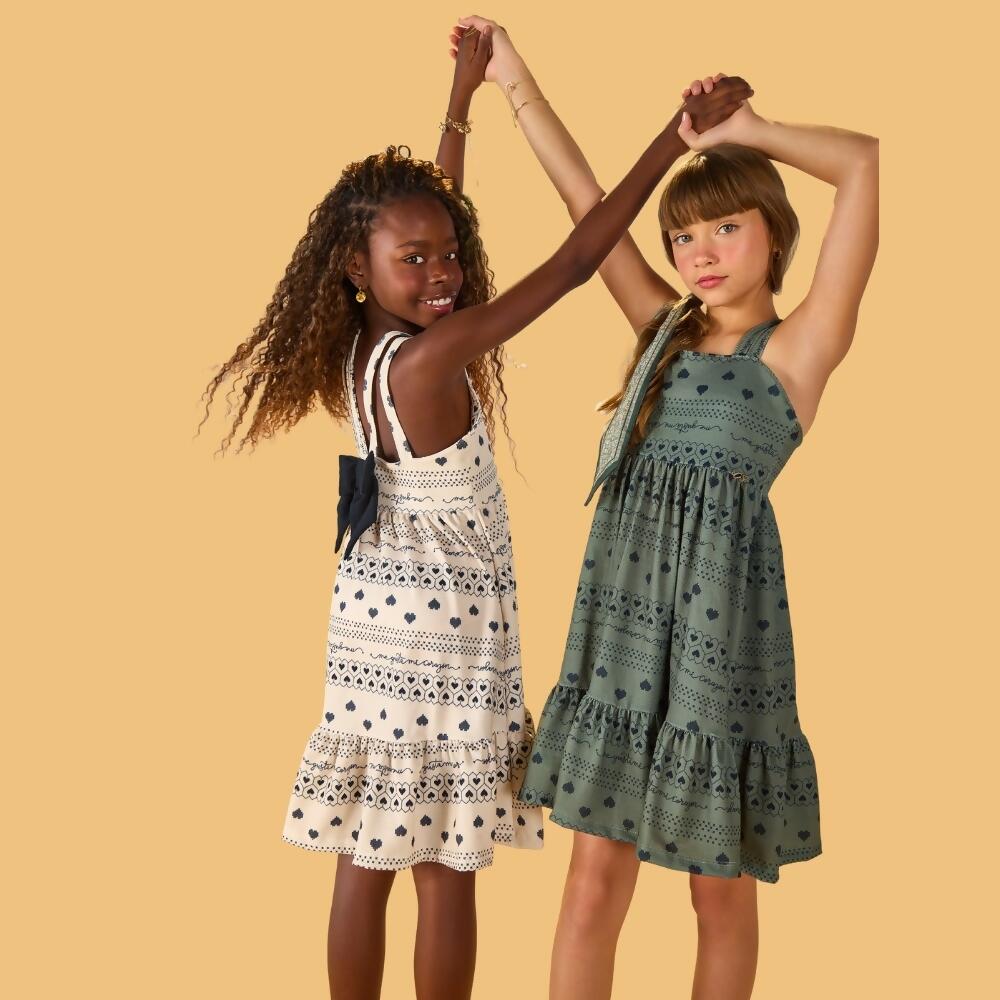 O vestido de alça da marca Kiki Xodó une sofisticação e leveza em um modelo perfeito para a coleção infantil premium. Com acabamento delicado, é uma peça versátil que valoriza a proposta de looks modernos e confortáveis.