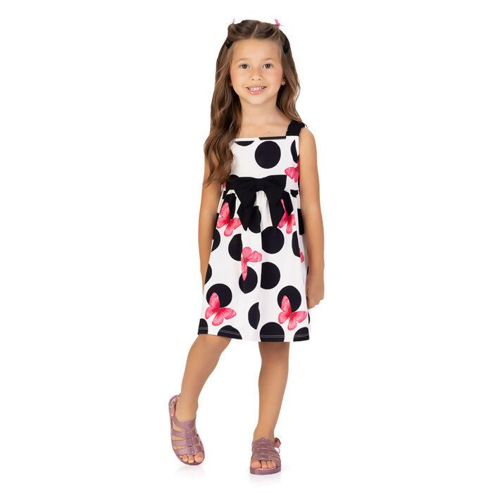 Vestido Kyly para os primeiros passos, com estampa alegre e laço que garante charme extra.