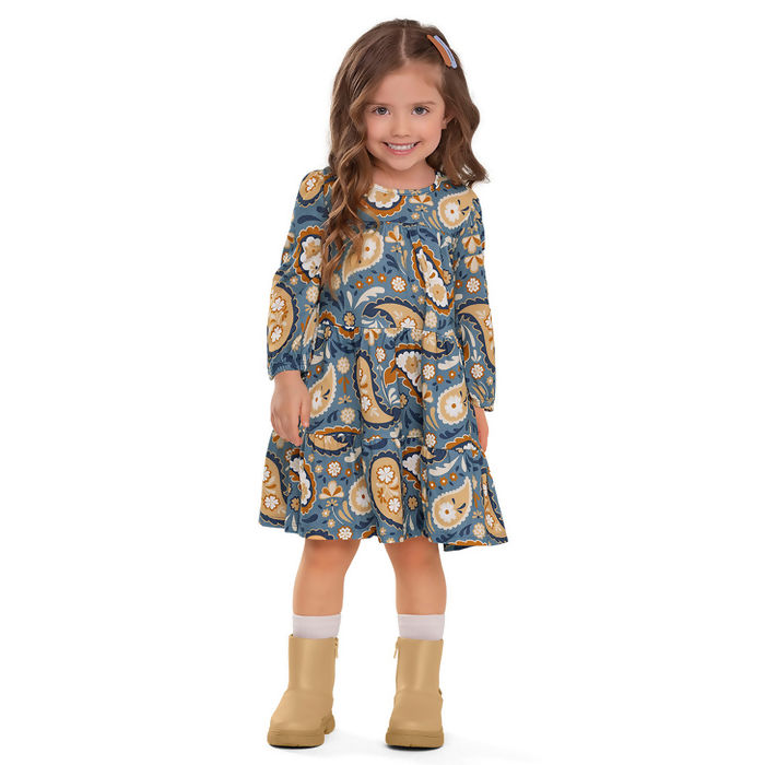 Vestido Feminino 4 a 8 Estampado Manga Longa Nanai | 6000390I